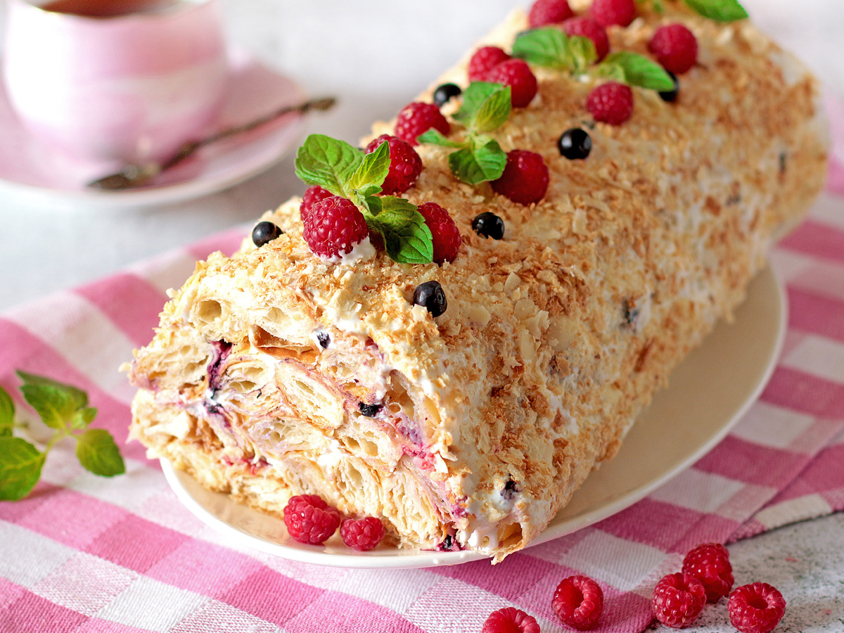 Этот удивительный десерт не оставит равнодушным никого. Слоеная структура, легкость и нежный крем делают его идеальным выбором для жарких дней. С ароматом ванили и легкой кислинкой ягод, такой торт моментально исчезает с тарелки во время вечеринок. Кроме того, готовить его невероятно просто, и он не требует замешивания теста.