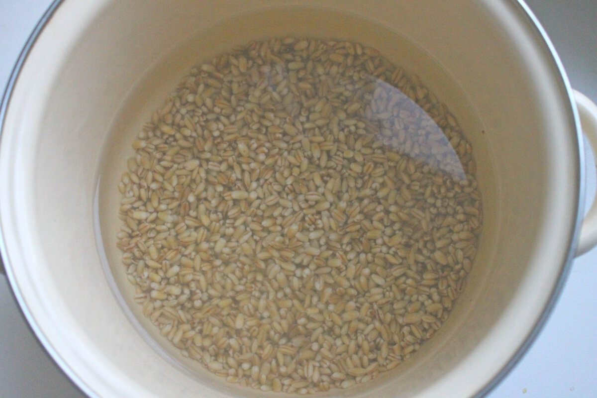 Первым делом перловую крупу нужно хорошо промыть, чтобы удалить грязь и пыль. Затем её следует замочить примерно на 20 минут в горячей воде — это поможет сделать её более мягкой. После этого перловку варят в большом количестве воды до готовности.