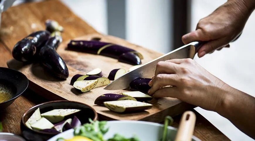 Прежде чем отправить баклажаны в морозильную камеру, необходимо их вымыть, нарезать и провести термическую обработку. Это необходимо, чтобы избежать образования кристаллов льда, которые могут разрушить структуру овощей. Баклажаны можно бланшировать, жарить или запекать.