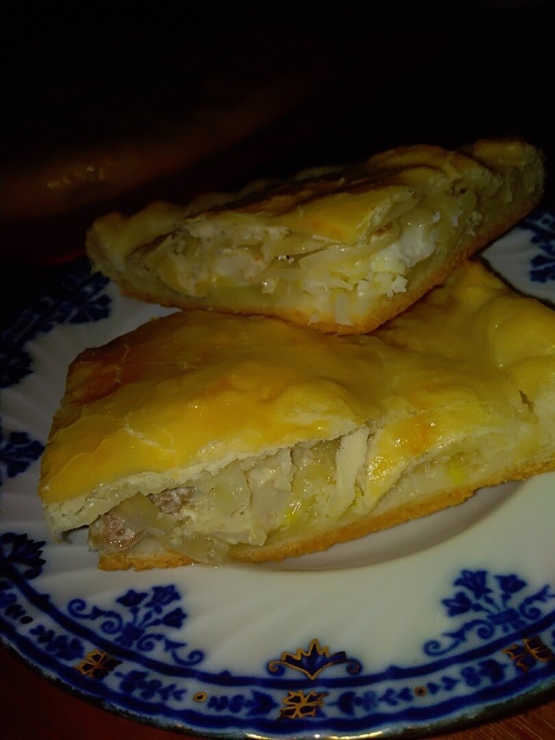 После первого подъёма теста, который занимает около 40 минут, его нужно обмять и оставить подниматься ещё раз. Применяя простые правила и избегая сквозняков, можно добиться отличного результата. При подготовке начинки раскатывается раскатанный пласт теста, где последовательно укладываются слои картофеля, рыбы и лука. Закрывается всё вторым слоем теста, смазывается яйцом и отправляется выпекаться в разогретую духовку при 180°C на 1 час 20 минут.