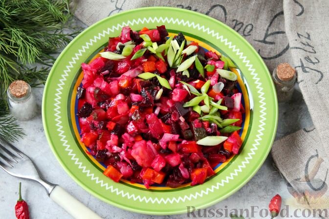 Этот винегрет не только вкусный, но и красиво смотрится на любом столе.