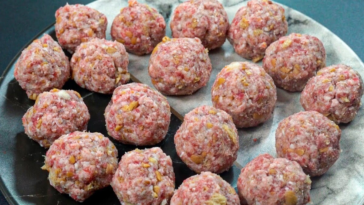 2. В отдельной миске смешайте фарш с нарезанным луком и чесноком, добавьте отжатый хлеб и тщательно перемешайте с приправами. Формируйте небольшие фрикадельки.