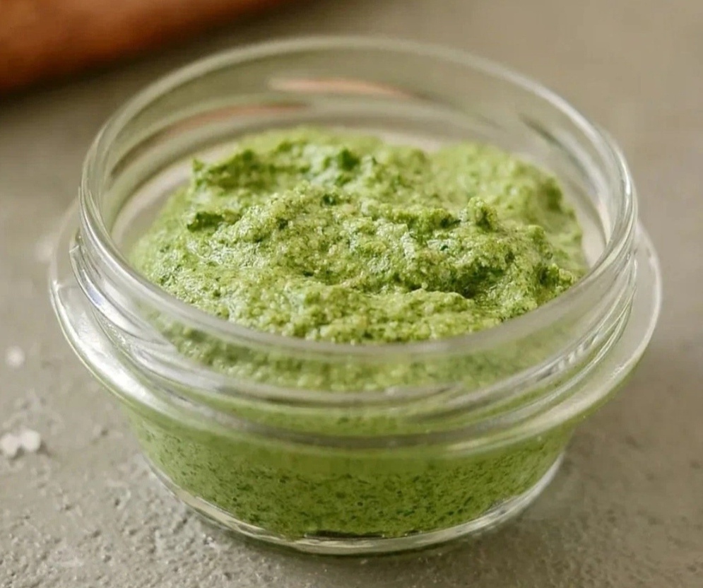 В блендер помещается зеленый горошек (без жидкости), добавляется масло и рубленая кинза. Все ингредиенты смешиваются до получения однородной массы. При желании можно добавить орехи или семена, а если предпочтительнее, используйте другую зелень вместо кинзы.