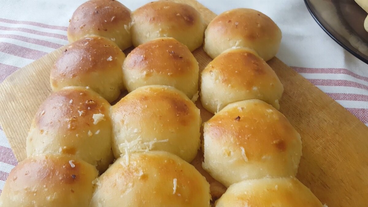 Заверните тесто в пленку и оставьте его в теплом месте на пару часов, пока объем не увеличится в два раза. Затем сформируйте небольшие шарики (примерно 20 штук) и выложите их на смазанный маслом противень. Дайте им расстояться под полотенцем еще 20-30 минут, включив духовку на 180 градусов.