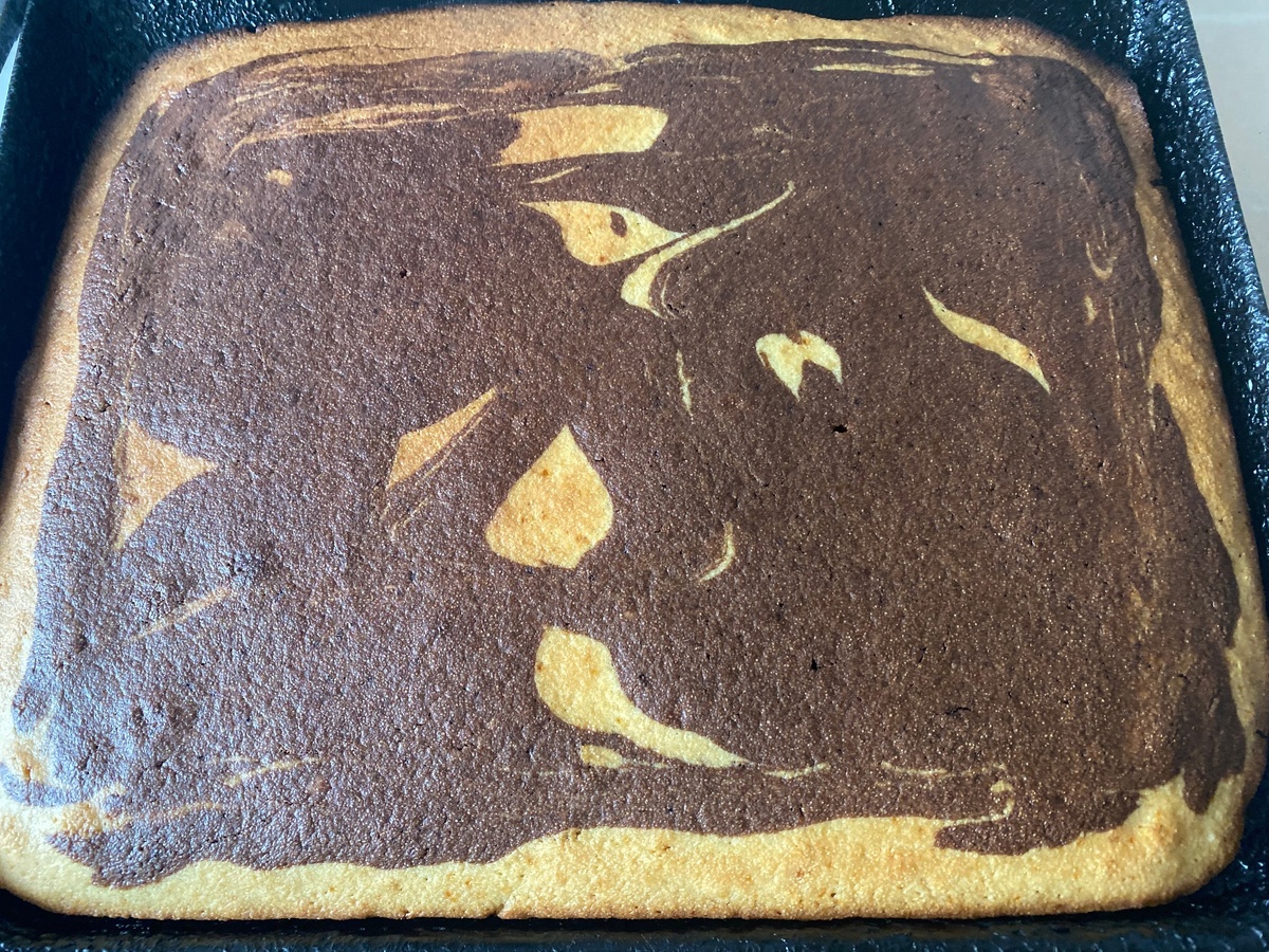 При подготовке противня его следует смазать растительным маслом. Сначала в него выливается белое тесто, а затем - шоколадное. Наблюдая за процессом, можно провести произвольные линии для «зебрового» эффекта.