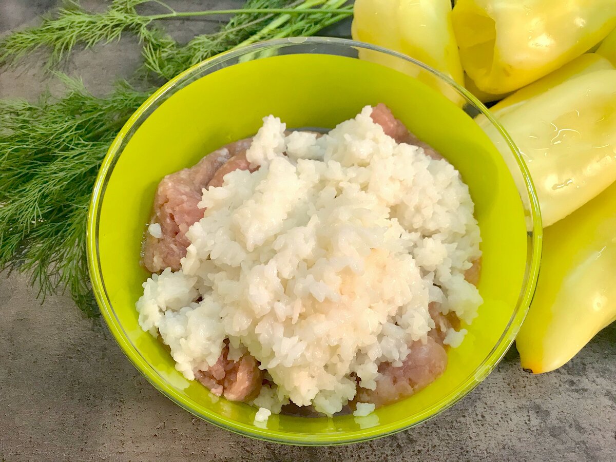 Не забудьте предварительно отварить рис до почти полной готовности и добавить его в фарш. Круглозерный рис будет более подходящим, поскольку длиннозерный сделает начинку менее нежной. Сырой рис, наоборот, приведет к тому, что начинка не станет ровной и слипнется.