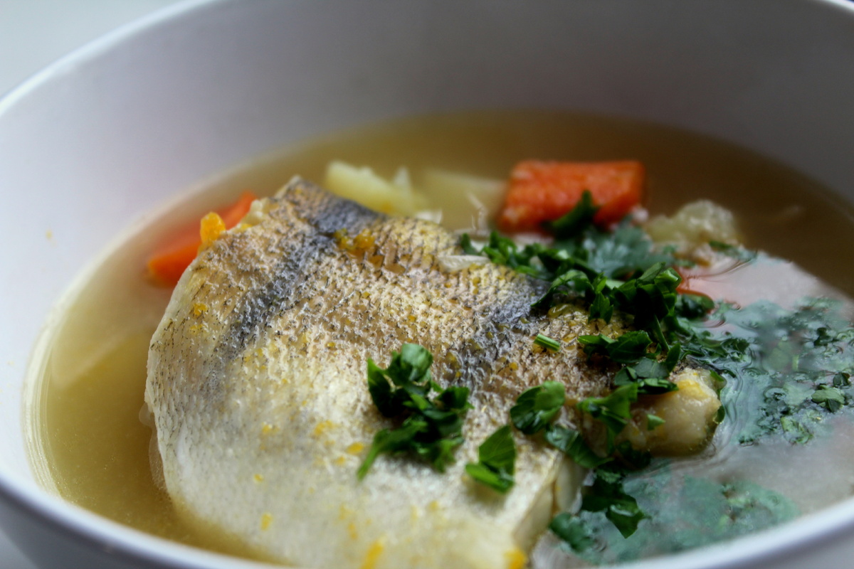 На дно кастрюли укладываются картофель, морковь, свежая петрушка, целая неочищенная луковица и лавровый лист, дополнительно добавляется тыквенное пюре. Сверху размещаются кусочки рыбы и заливать бульоном. Не забудьте посолить и поперчить по вкусу. Включите плиту, доведите суп до кипения и затем уменьшите огонь — важно, чтобы он не бурлил, иначе рыба превратится в пюре.
