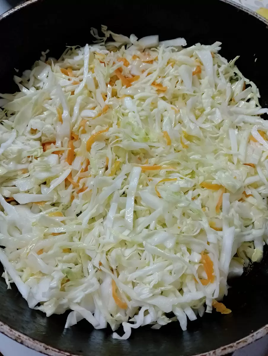 - Нарезанная капуста, которая будет добавлена к обжаренным овощам.