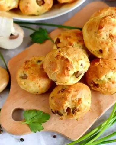 Нежные булочки из заварного теста с грибами и сыром