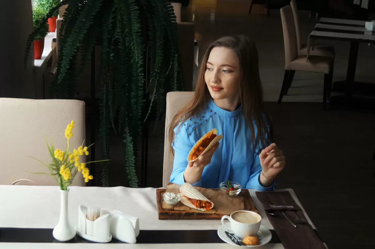 Когда девушка, наконец, взялась за меню более серьёзно и вновь вернулась к обсуждению, выбор её пал на тако. Сложно было не усмехнуться, ведь тако не совсем входило в категорию диетических блюд. Официант, желая напомнить о характеристиках, подробно рассказал о процессах приготовления, включая использование свежих овощей и мяса. Ответом стал уже более приемлемый выбор — апельсиновый фреш.