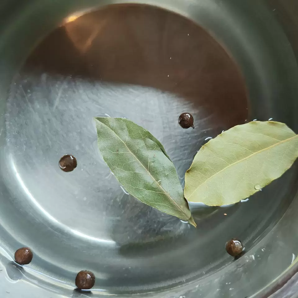 Шаг 1: Для начала готовим засолочную смесь. В 1 литре воды растворите 4 чайные ложки соли, добавьте 5 горошков душистого перца и 2 лавровых листа. Доведите до кипения и варите 15 минут. После этого остудите получившуюся жидкость.