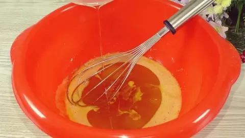 Сначала в глубокой миске тщательно смешивают яйца и белок, добавляют немного соли, сахар и ванилин. Важно, чтобы мед был жидким; если он довольно густой, стоит его немного растопить для удобства.