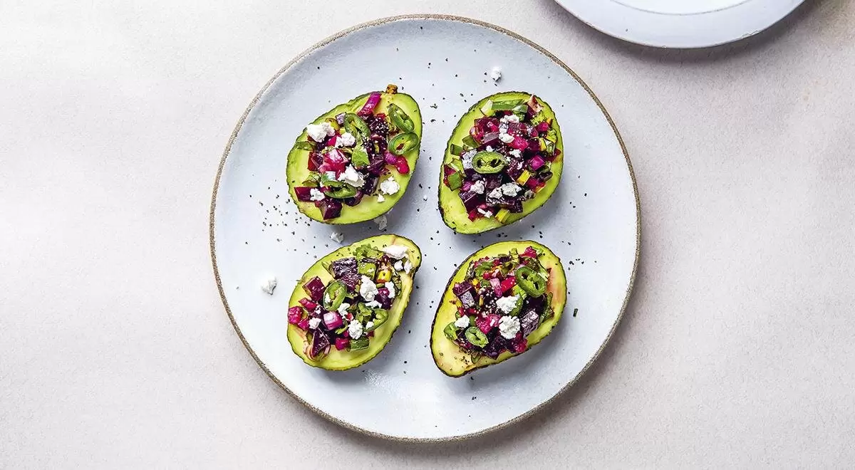 Эта закуска не только порадует своей красотой, но и удивит богатством вкуса. Приготовьте фаршированное авокадо со свекольным салатом и дайте своим гостям возможность насладиться этой уникальной комбинацией!