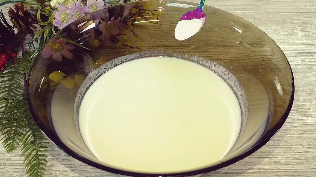 Для начала, кефир стоит вынуть из холодильника или слегка подогреть. В него добавляется сода, и всё тщательно перемешивается. Сливочное масло нужно растопить отдельно.