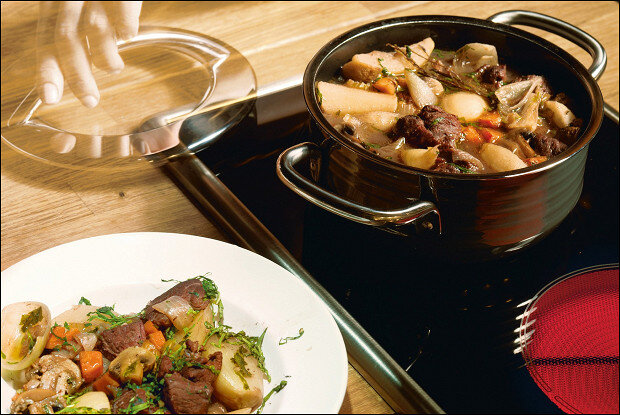 Мелко нарезать лук, морковь и стебель сельдерея. Обжарить на растительном масле в глубоком сотейнике на сильном огне до появления яркого аромата.Добавить кусочки баранины с костью и жарить до румяного состояния, по необходимости добавляя масло, если овощи начинают пригорать.Положить в сотейник филе баранины, нарезанное кубиками, и измельчённый чеснок. Обжарить пару минут, затем залить бульоном и вином. Уменьшить огонь, накрыть крышкой и тушить в нагреве в течение одного часа.Тем временем очистить лук-шалот, нарезать репу сегментами. Луковицы шалота разделить пополам, а шампиньоны нарезать соломкой.На растительном масле слегка обжарить шалот, репу и шампиньоны, затем добавить в сотейник с бараниной. Туда же положить перец, лавровый лист и тимьян. Продолжать тушить еще 40 минут, добавляя бульон или вино, если жидкости становится недостаточно. Добавить горчицу, тщательно перемешать, приправить, оставить на огне еще 5 минут.Снять с огня, украсить рубленым базиликом и подавать горячим.Этот изысканный рецепт отлично подойдет для дружеских встреч или семейных ужинов.