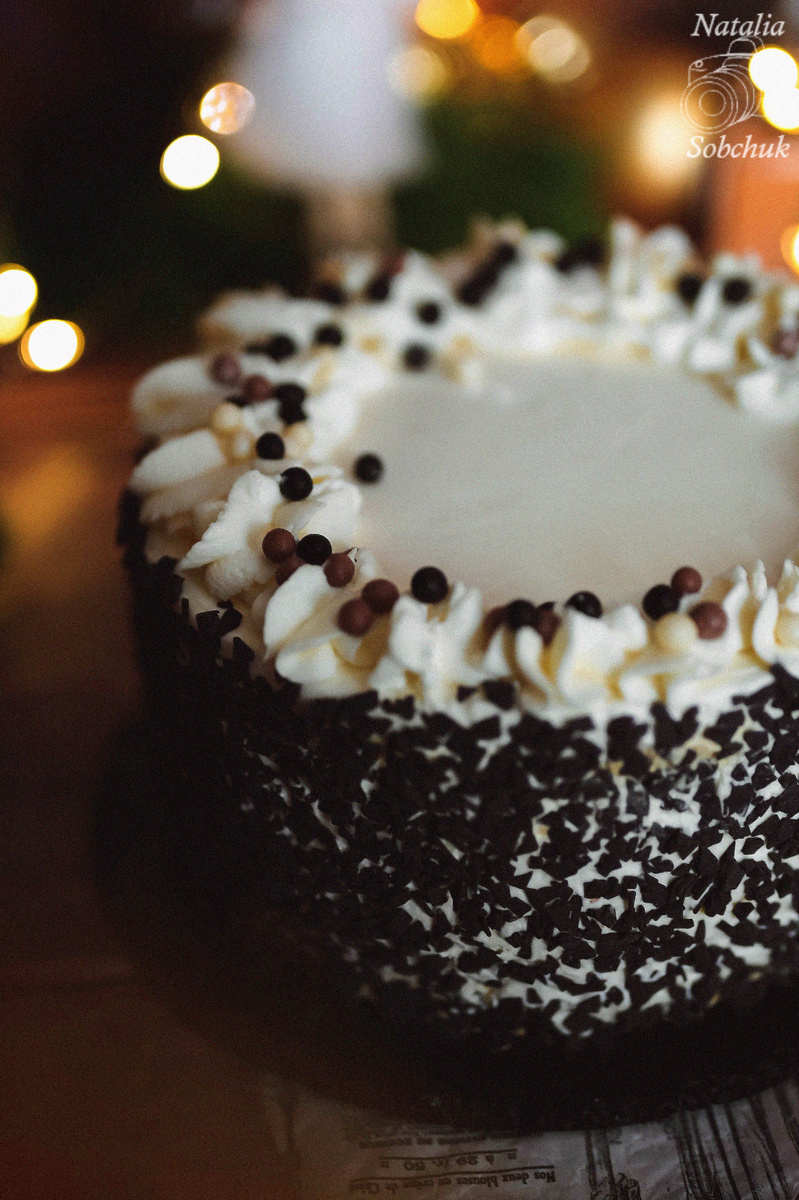 Соберите торт, чередуя коржи и крем. При желании добавьте нарезанный банан. Оберните торт ацетатной лентой и оставьте в холодильнике на 5 часов для стабилизации. После этого аккуратно выровняйте и украсть торт по своему вкусу!