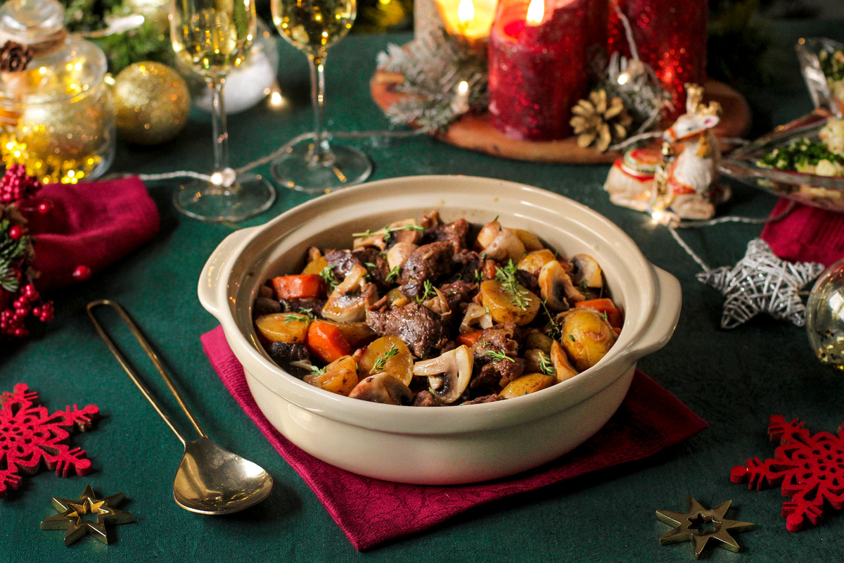 Французский бургиньон — это не просто блюдо, а настоящая зимняя классика. Тушеная говядина в вине, с картофелем и грибами, создаёт незабываемый аромат, который околдовует ваш дом, наполняя его теплом и радостью. Это идеальное яство для уютного вечера со своими близкими.