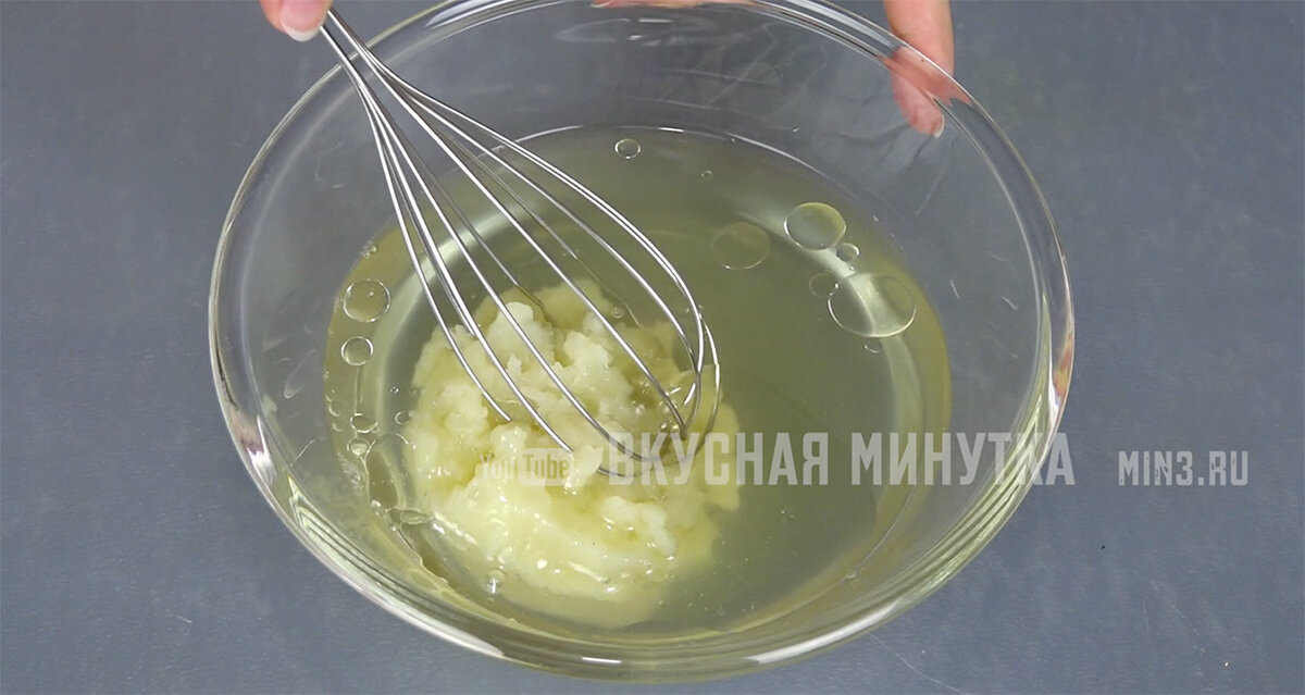 Для начала в глубокой миске объединяются теплый картофельный отвар, картофельное пюре, соль и растительное масло. Все тщательно перемешивается.