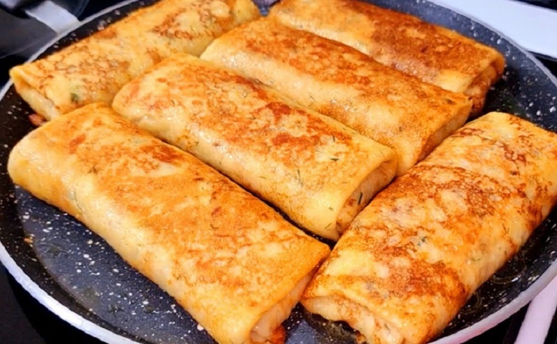 На разогретой сковороде с каплей масла выкладывайте небольшие порции теста, формируя тонкие лепешки. Обжаривайте с обеих сторон до золотистой корочки, которая придаст изделию аппетитный вид и вкус. Готовые картофельные блины имеют слегка плотную текстуру, но остаются эластичными для начинки.