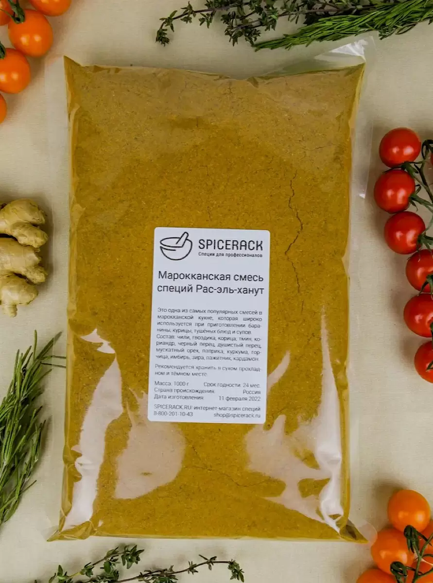 Приготовление: Все специи обжариваются на сухой сковороде и затем перемалываются в порошок. Применение: Идеально подходит для мяса, тажинов, кускуса и супов.