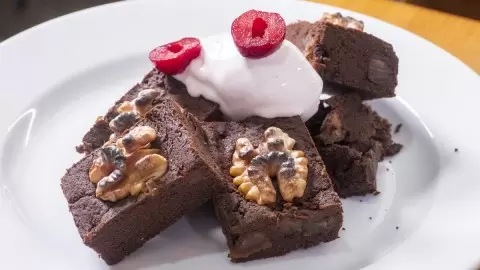 После того как брауни немного охладятся, нарезайте их теплым ножом. Приготовьте легкий десерт для подачи: измельчите замороженную вишню и смешайте ее с пломбиром. Подавайте шоколадные брауни вместе с мороженым, украсив ягодами вишни для дополнительного стиля.
