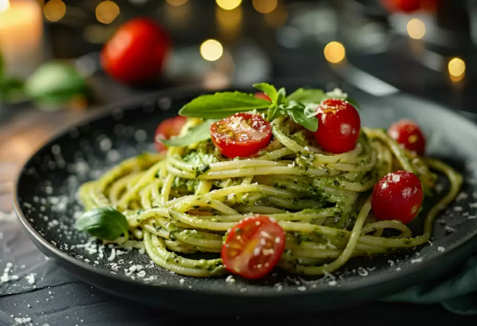Организация романтического ужина теперь проще простого! Веганское спагетти с песто из авокадо и базилика станет не только украшением стола, но и настоящей изюминкой вечера. Это лакомство готовится всего за 20 минут и сочетает в себе свежесть и насыщенный вкус, способные покорить сердца ваших гостей.