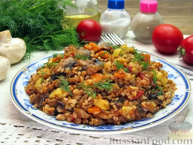 Гречка с кабачками, помидорами и грибами — это отличный способ добавить разнообразия в привычные блюда. Ароматные специи и томатный соус делают её рассыпчатой и сытной, ведь готовить всё это можно на одной сковороде.
