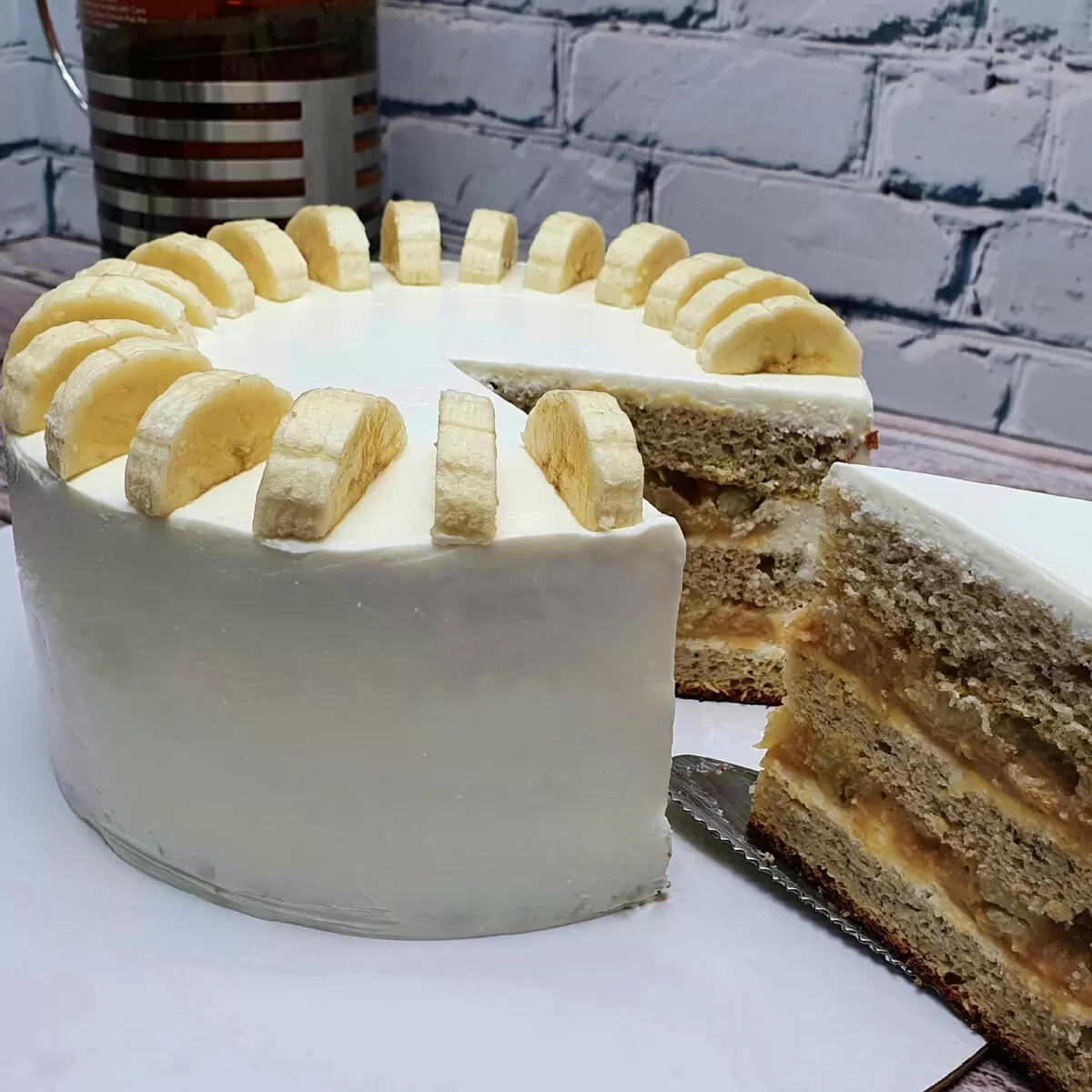 Попробуйте приготовить удивительно вкусный банановый ПП торт. Он представляет собой влажный и лёгкий бисквит с творожно-сливочным кремом и начинкой из ПП сгущёнки вместе с карамелизированными бананами. Это лакомство доставит вам настоящее удовольствие!