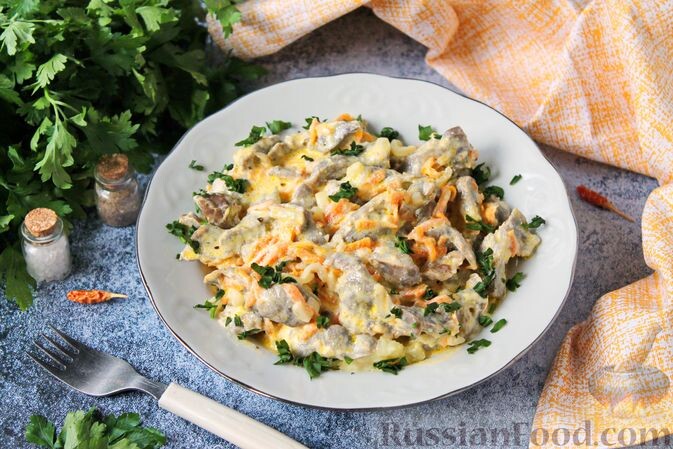 Куриные желудки в сметанном соусе