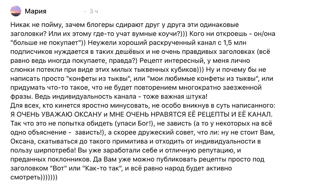 Тема, озвученная многими пользователями, требует внимания. Множество комментариев о том, как блогеры занимаются плагиатом заголовков, звучат все чаще. Замечания о самодостаточности и уникальности публикаций заставляют задуматься о том, сколько на самом деле индивидуальности остается в интернете.